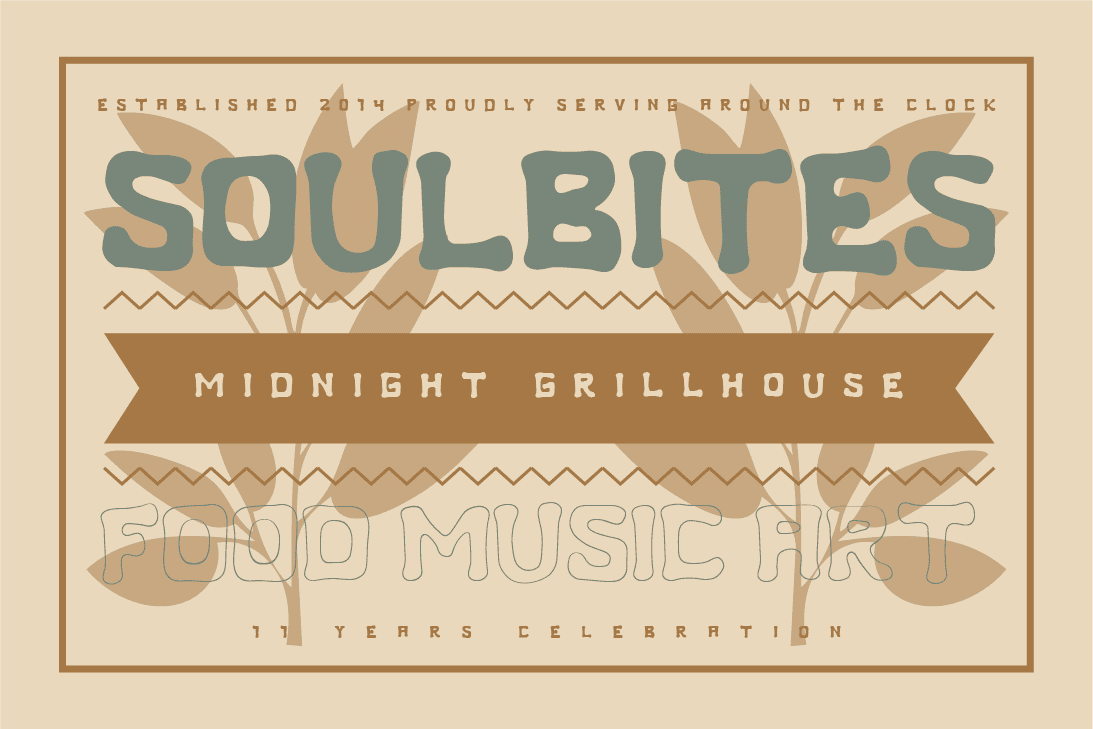 This font channels the charm and nostalgia of retro design with a hand-drawn touch. Crafted to evoke a sense of authenticity and warmth, each character is meticulously sketched to bring a vintage yet personal feel.