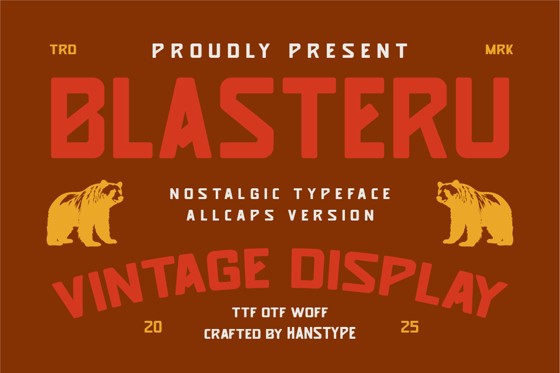 Blasteru Font is a retro-inspired, hand-drawn typeface that brings a nostalgic yet fresh vibe to your designs. Its bold strokes and quirky imperfections exude a handcrafted charm, making it perfect for projects that aim to stand out with personality. Ideal for vintage posters, branding, social media graphics, and product packaging, Blasteru Font captures the essence of retro aesthetics while adding a modern twist. Whether you’re channeling the energy of the ’70s or creating a timeless artistic appeal, Blasteru Font ensures your message is both memorable and visually striking.