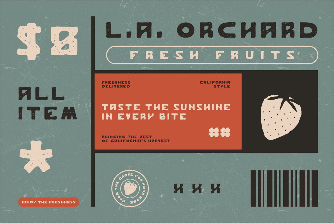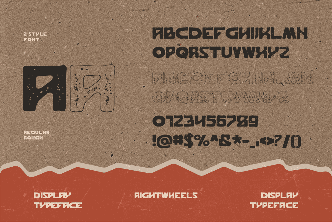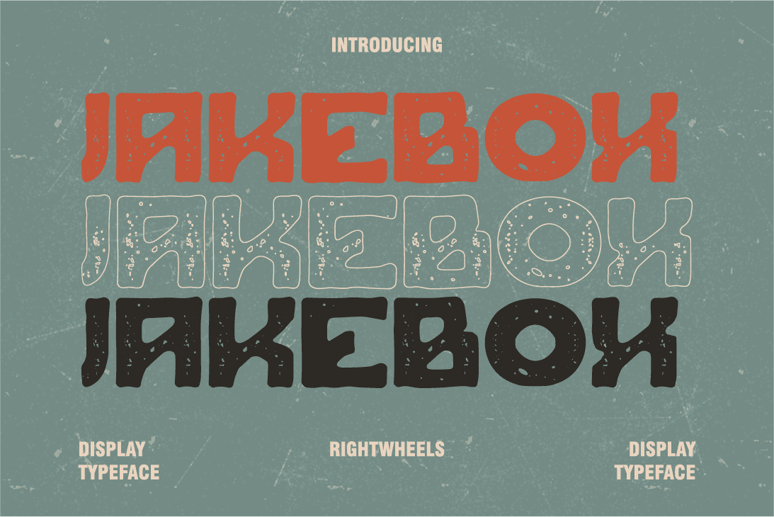 Is a grunge and vintage-inspired display font that combines rugged texture with timeless charm. Its distressed, worn-out edges evoke a sense of rebellion and nostalgia, making it perfect for designs that want to stand out with character. With bold, impactful letterforms, JAKEBOX is ideal for posters, album covers, and any creative project that needs a rough yet stylish retro aesthetic. It exudes raw energy and vintage appeal, perfect for brands or designs looking to make a strong, unforgettable statement.